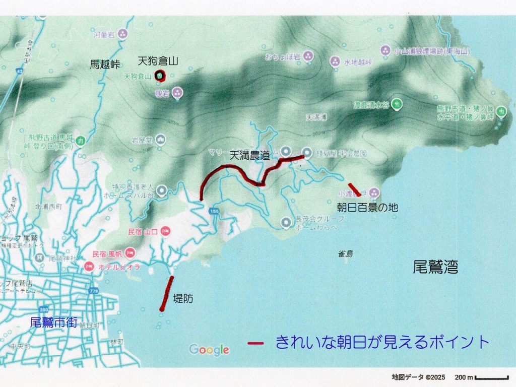 熊野古道馬越峠を尾鷲側へ越えた南東面の天満浦には、特等席がたくさんあります。