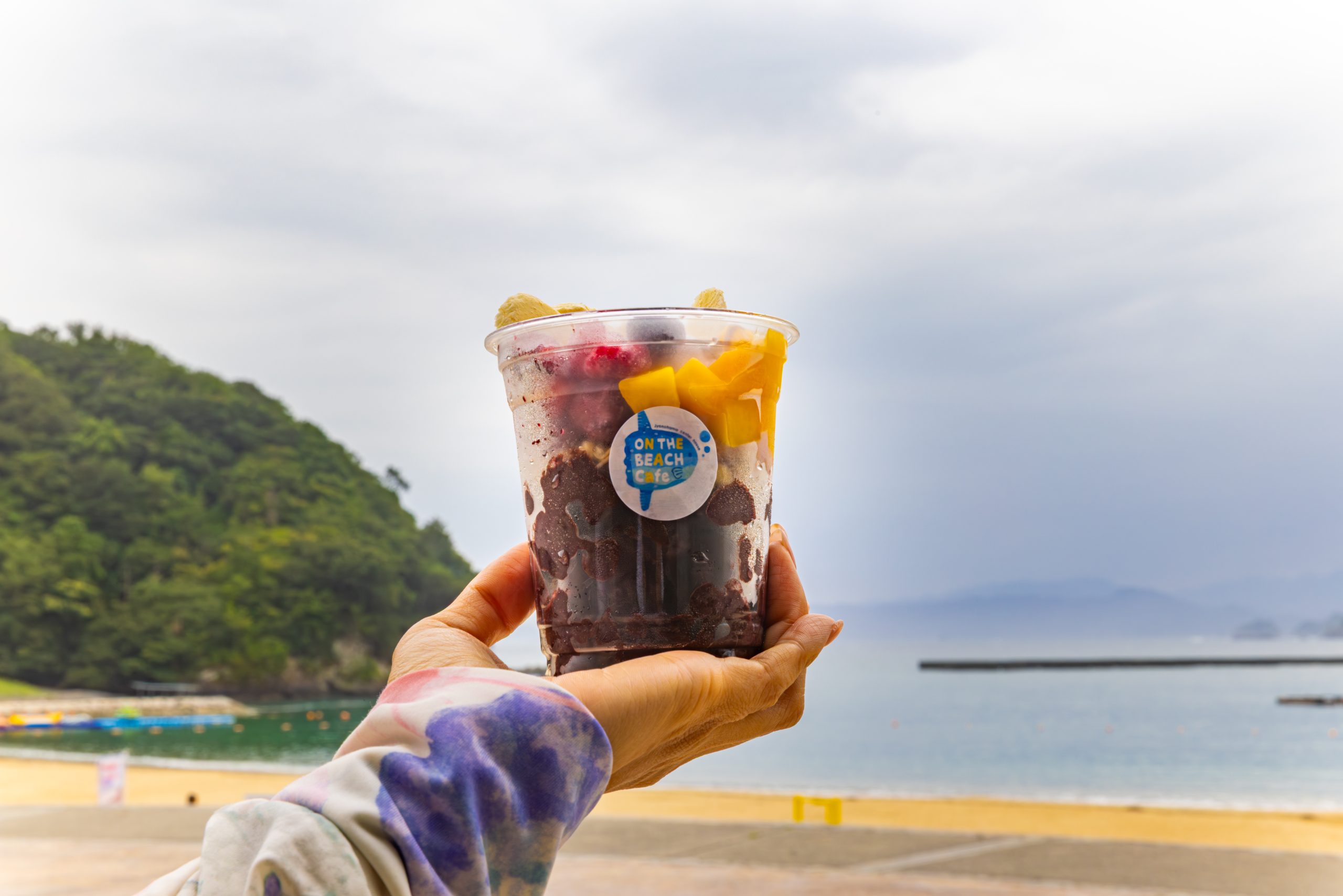 「ON THE BEACH Café」のロゴが入った容器にフルーツが映えます。お味も最高!