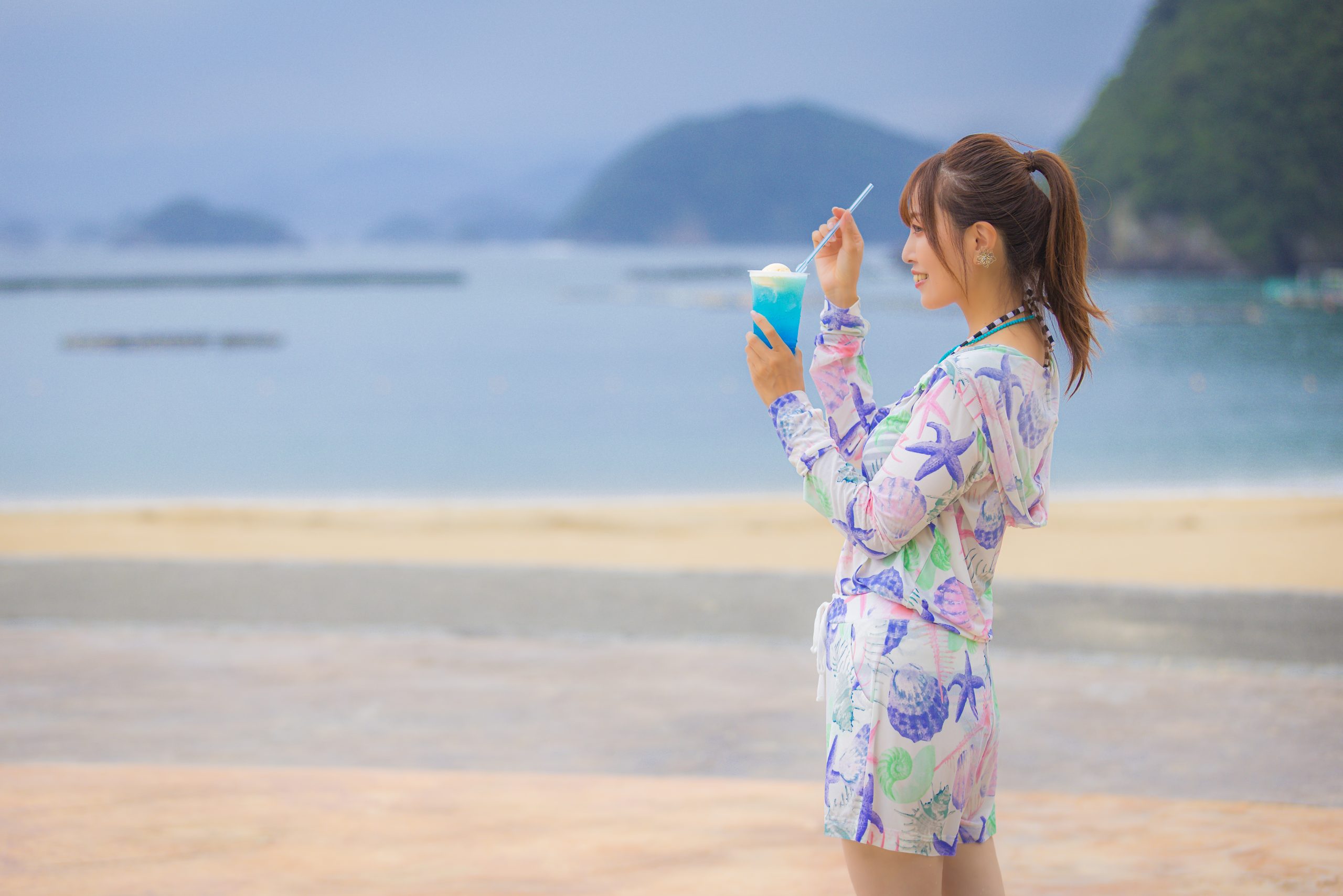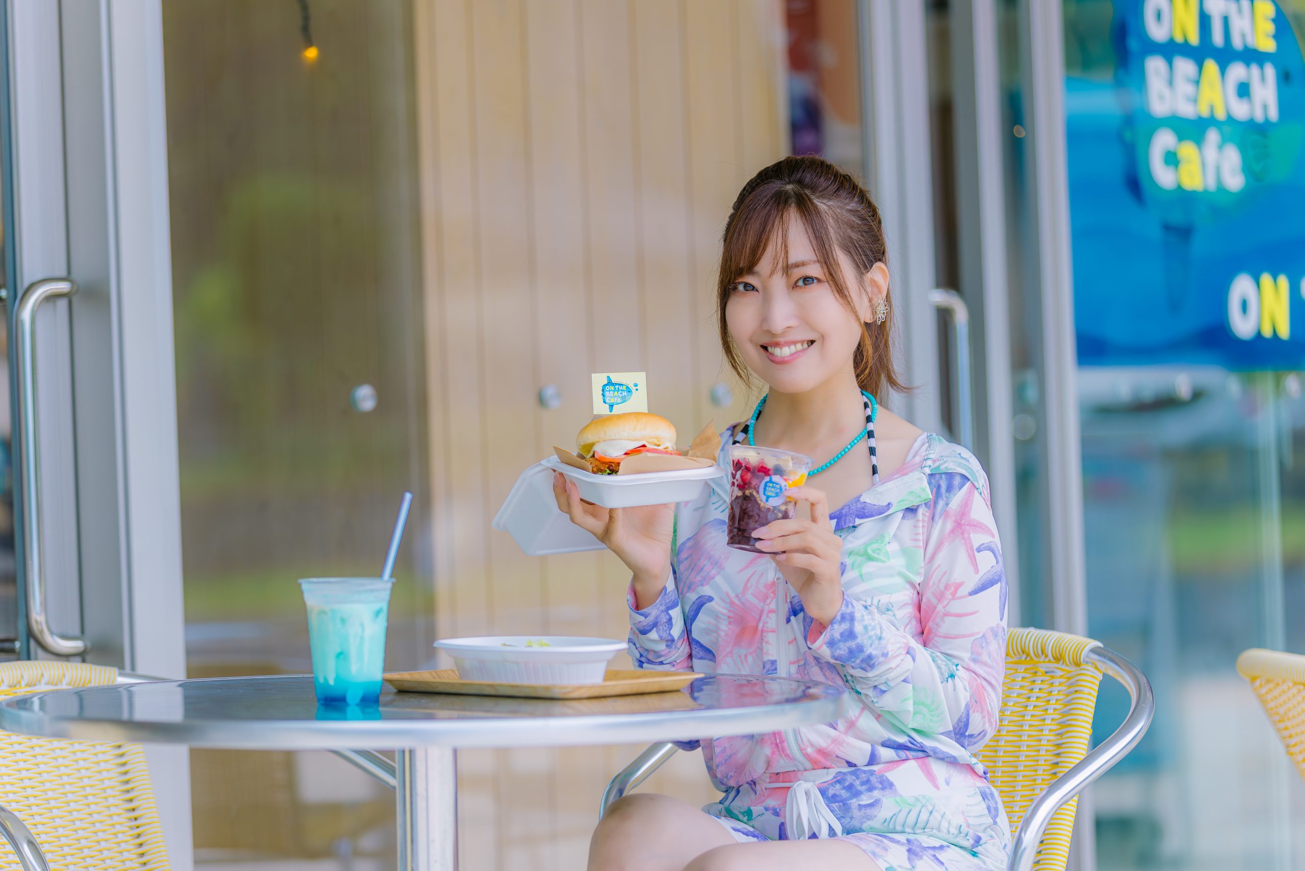 一番人気はブルーハワイのクリームソーダ。「ON THE BEACH Café」を利用する多くのカップルが、海を背景に写真を撮りながら味わっています。