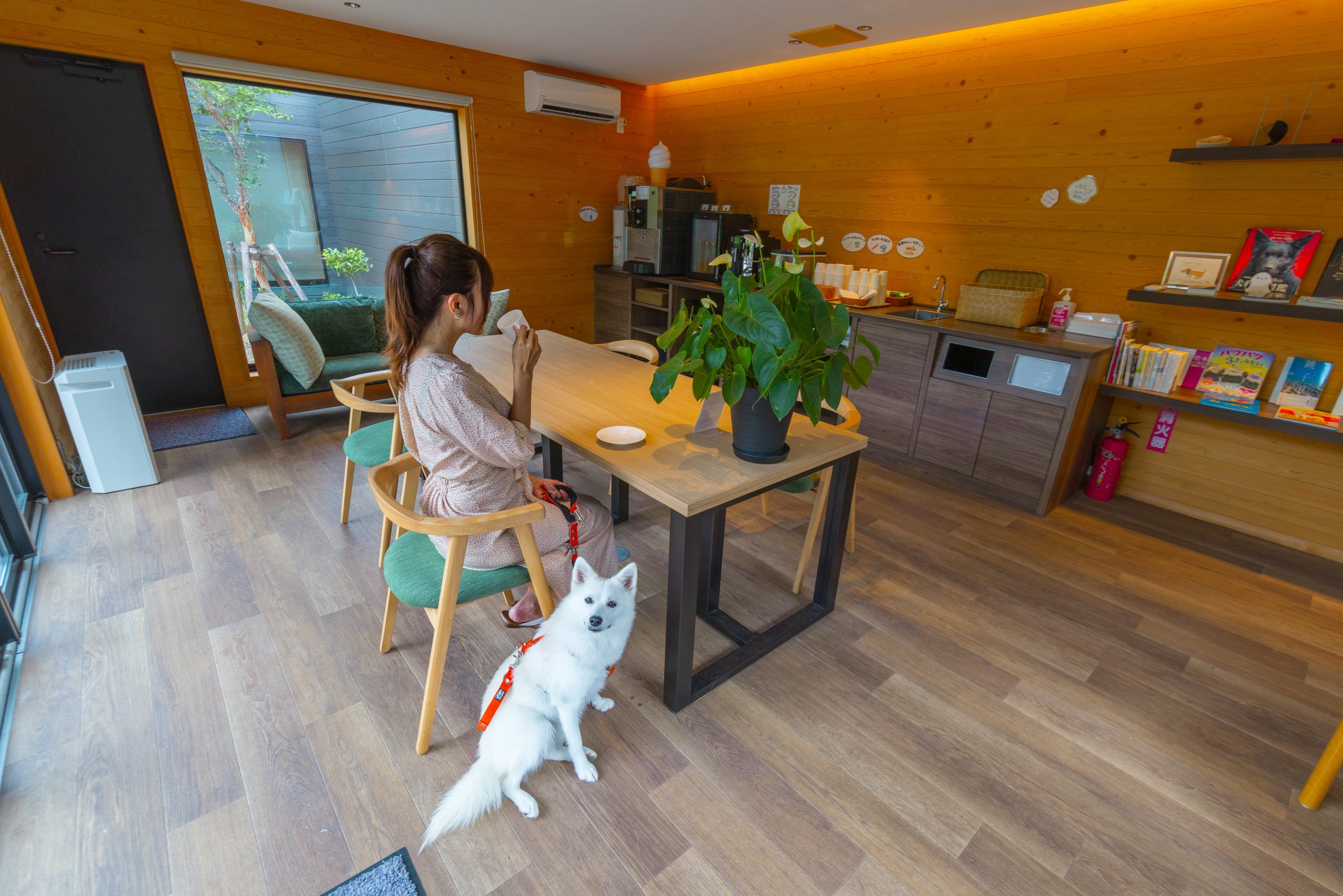 ウェルカムドリンクを自由に楽しめるラウンジも、ワンちゃんと一緒に利用できて嬉しいですね。
