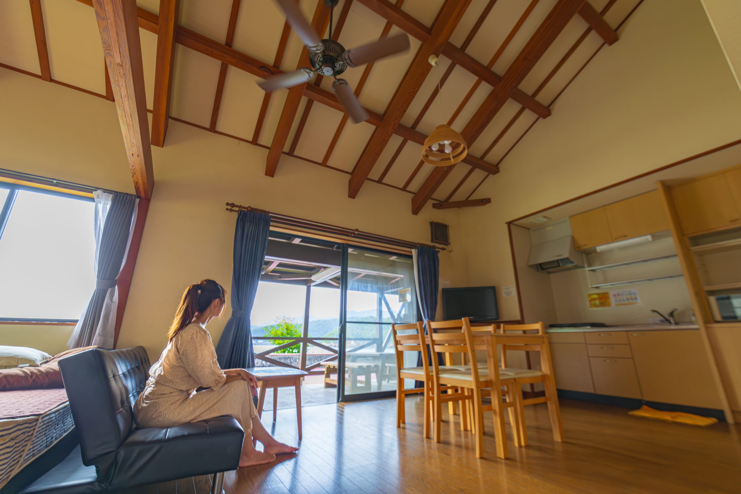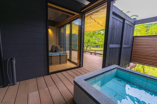 露天風呂が付いていたり、開放感あるテラスでのんびりと過ごしたり。