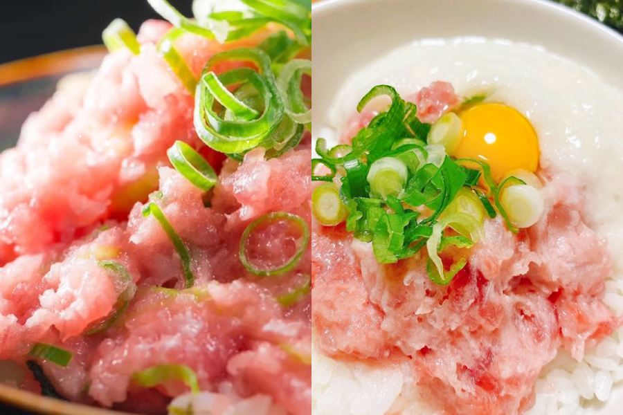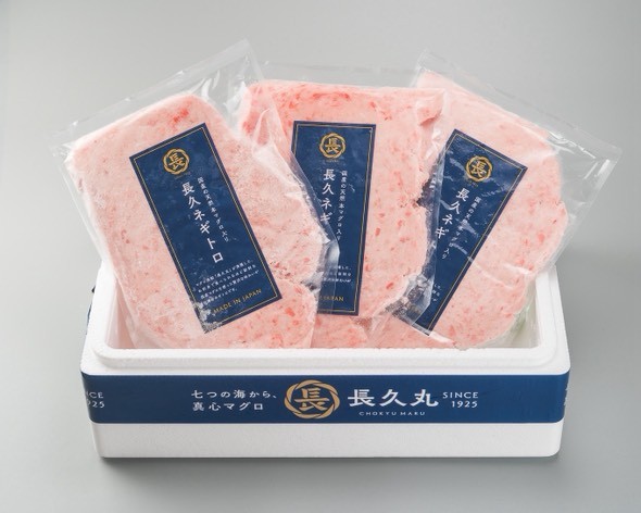 自社船長久丸が釣り上げた天然本マグロ、バチマグロ、とろびんちょうをブレンドしています。旨みと甘みが詰まった、ふわふわモチモチなネギトロをご自宅でお楽しみください!